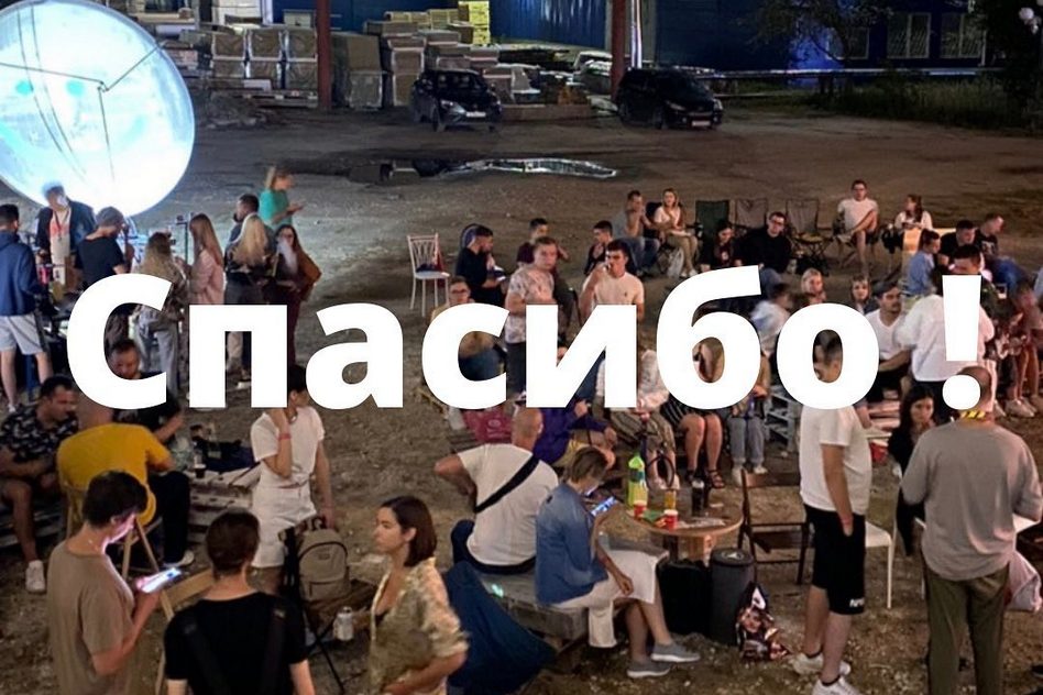 Далее объявили что вот-вот будет кино, но из-за технических неполадок, это «вот-вот» немного затянулось. Для присутствующих это не стало проблемой. Все общались внутри своих компаний, а потом и вовсе объединялись в большие группы. Мы, например, изначально пришли впятером, но к показу фильма вокруг нашего столика было человек 12. И это классно. Все устали от карантинных ограничений и были рады увидеться со старыми знакомыми или даже завезти новые.