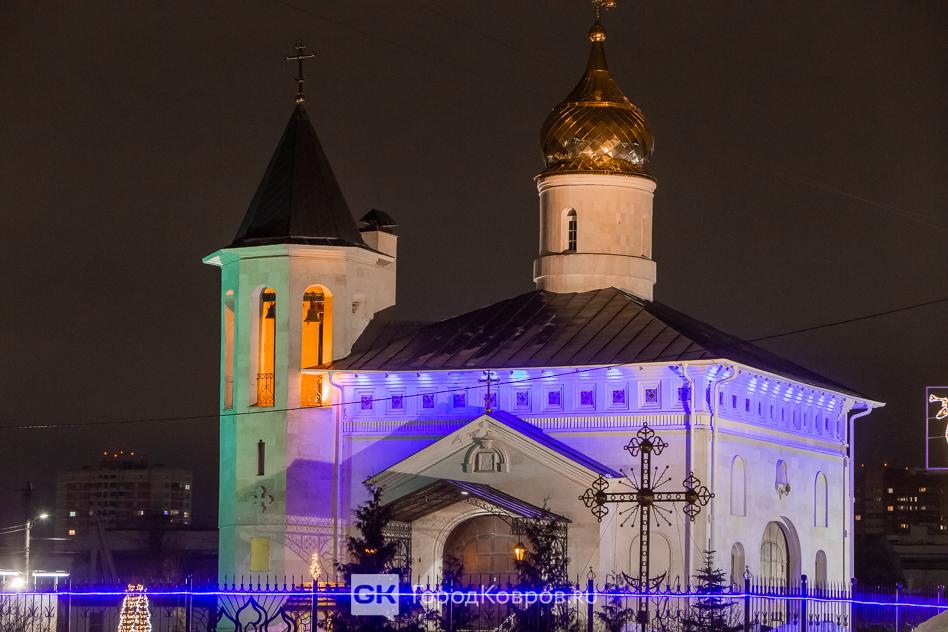 Напротив храма горит иллюминацией «Аскона». Она не только в Новый год светится, хотя определённые элементы декора к празднику привнесены. В целом, глаз всё это радует. Хорошо, когда въезжаешь в город и понимаешь — это именно город, а не какой-то иного типа населённый пункт!