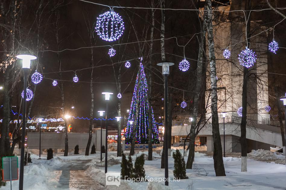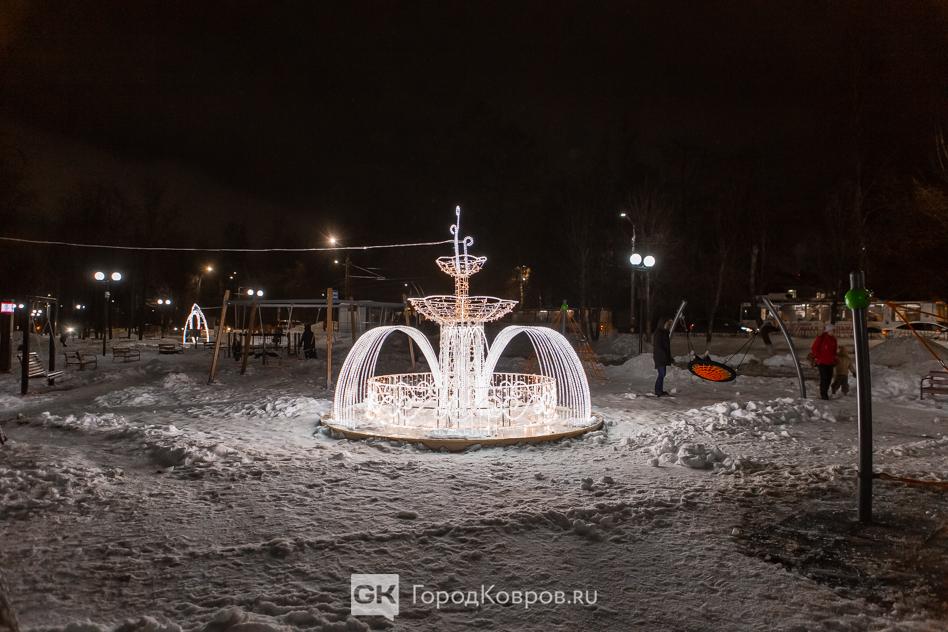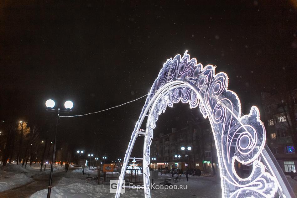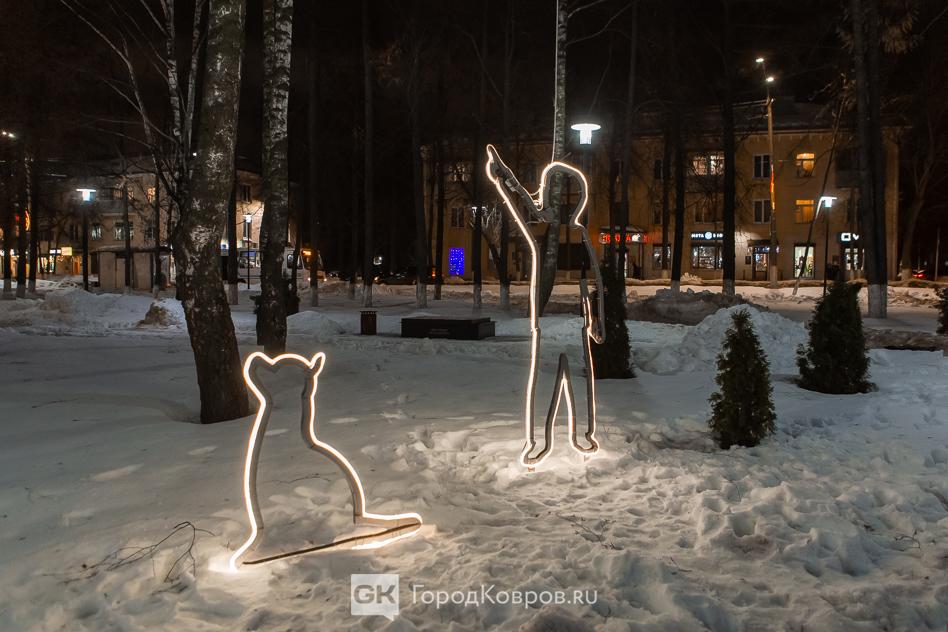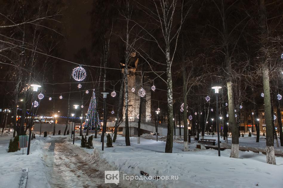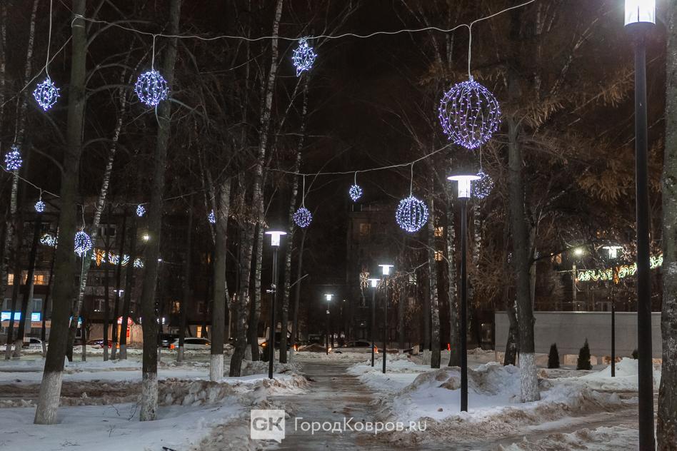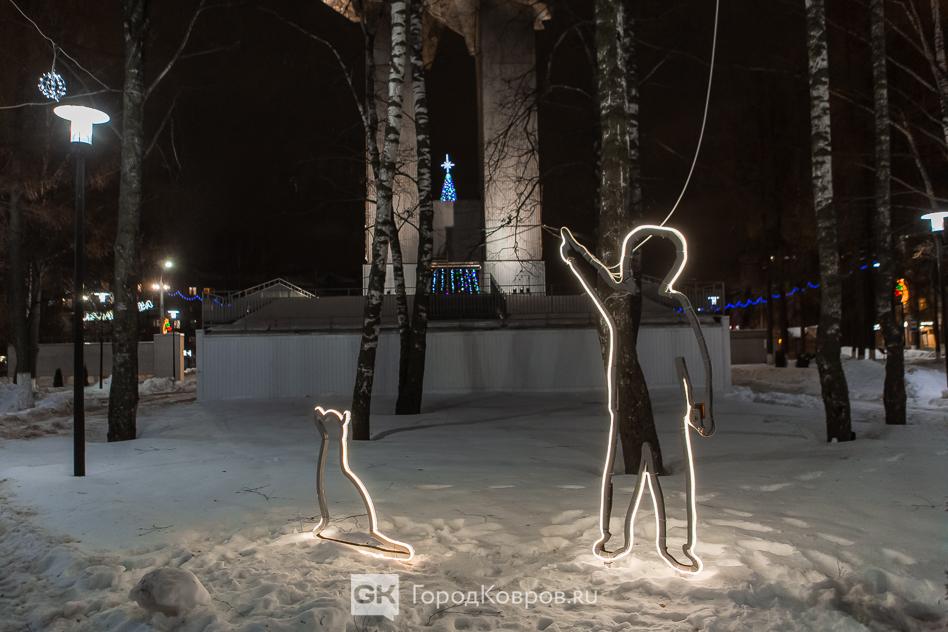 Данный сквер отличает от нескольких других ковровских скверов множество световых инсталляций. Их 27 декабря (после приёмки) включили, и вот вам — красота!