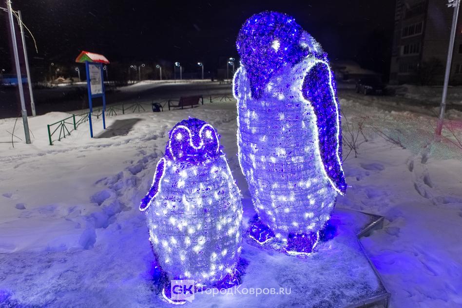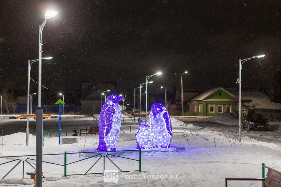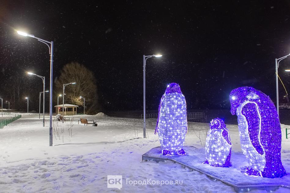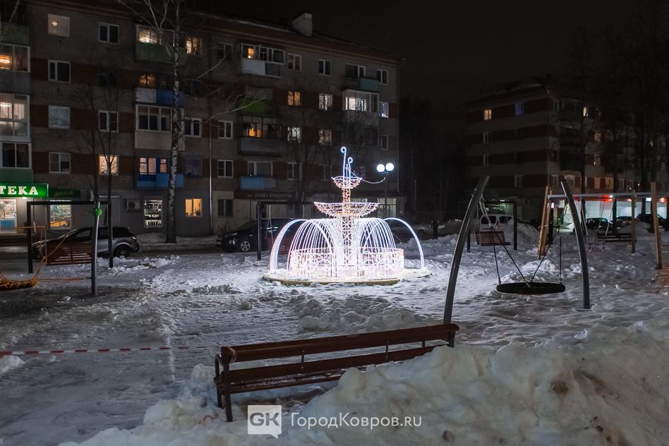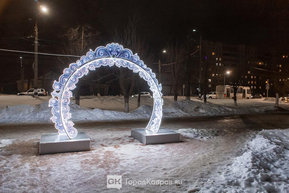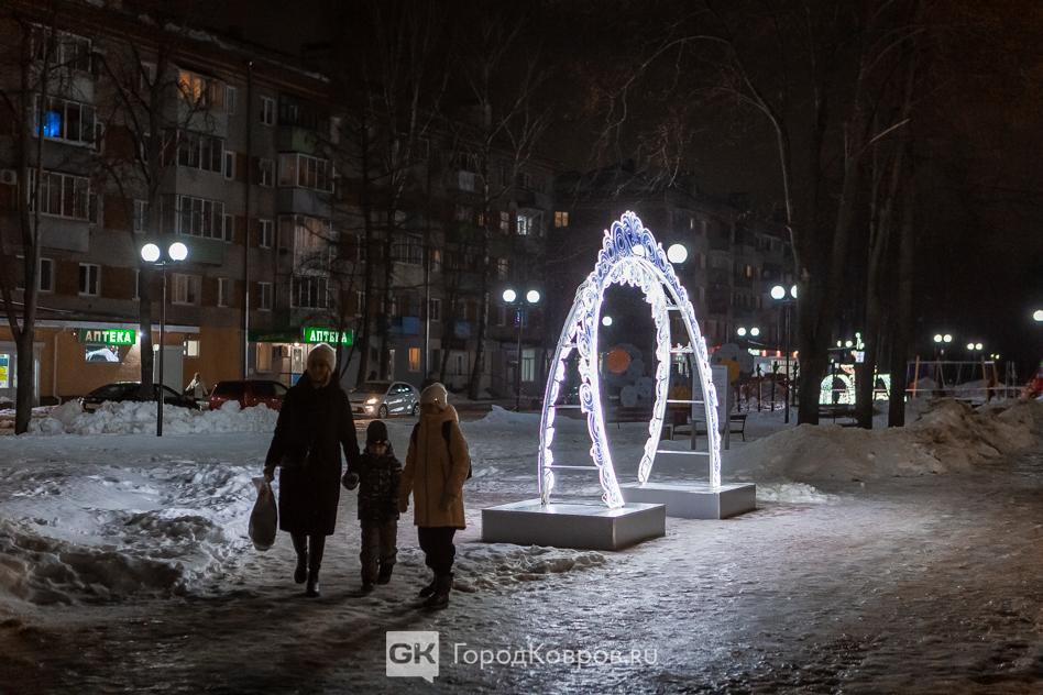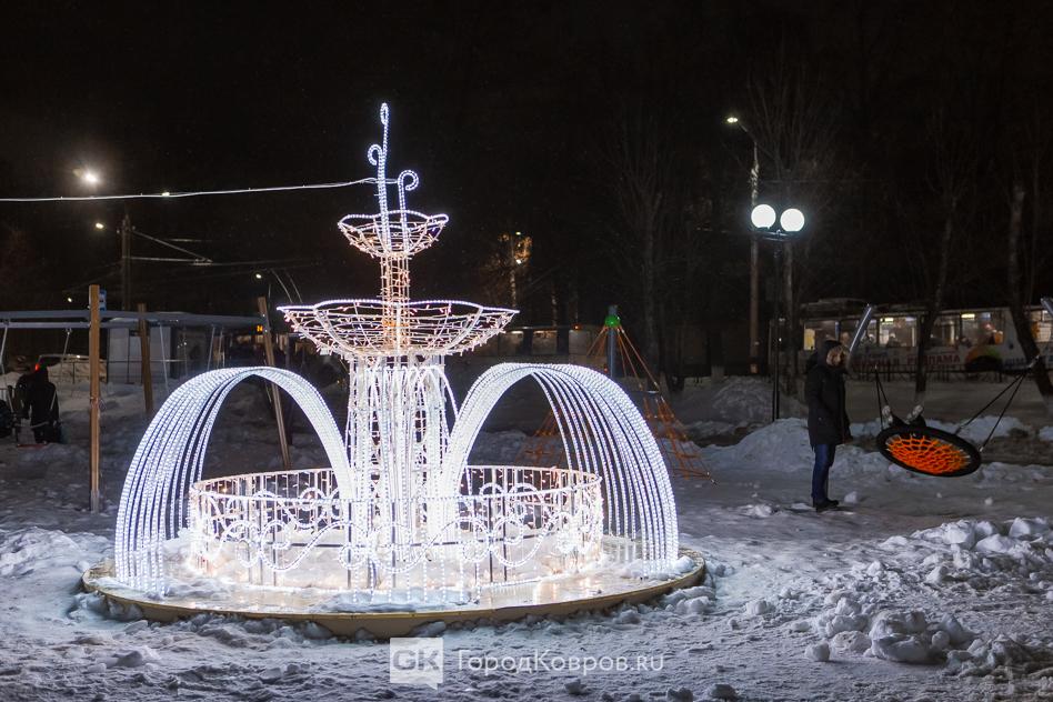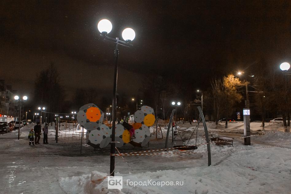 Данный сквер отличает от нескольких других ковровских скверов множество световых инсталляций. Их 27 декабря (после приёмки) включили, и вот вам — красота!