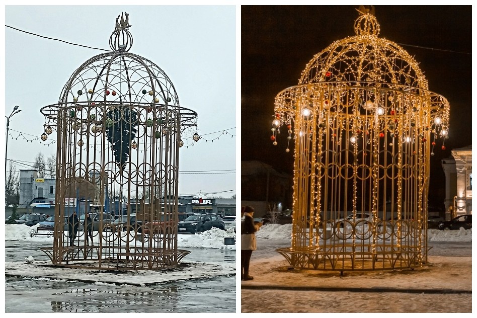 Отдельных строк заслуживает привокзальная ёлка. Это просто праздник какой-то! Вопрос, какой именно. Накануне соцсети заполонили фото чудо-ёлочки, которую заключили как «девицу в темницу». Между прочим, зря убрали, было бы прикольно.