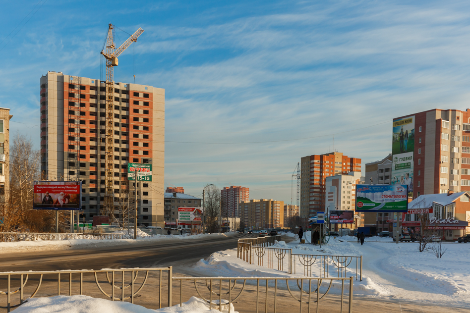 Улица Строителей оправдывает название. Серьезный конкурент проспекта Ленина. Новостройки, салоны красоты, торговые центры, уютные кафешки и гаражи. Вангуем, будущий центр города.