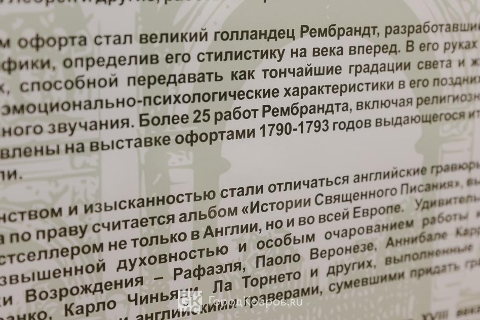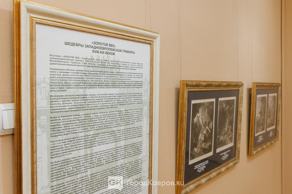 В Ковровском историко-мемориальном музее проходит очередная выставка из серии экспозиций. Это выставка от московской организации «АРТГИТ». В наш город привезли гравюры, отпечатанные в Западной Европе в XVIII-XIX веках.