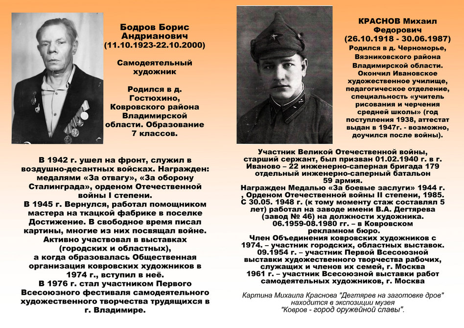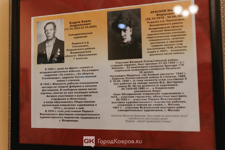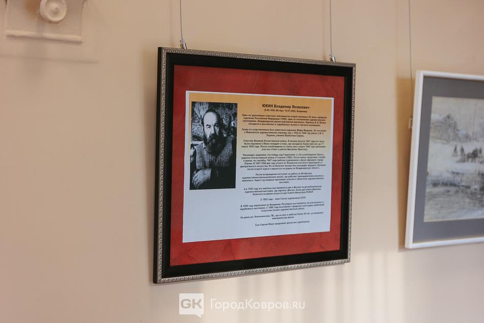 Наряду с картинами Сергея Юкина в Ковровском историко-мемориальном музее представлены работы Эроса Кузнецова, Георгия Куликова, Бориса Бодрова, Михаила Краснова, Бориса Тазетдинова и Бориса Хорошева.