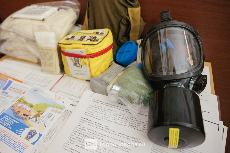 Помимо бесед (хотя убеждение через слово в библиотеке считают наиболее правильным и эффективным) в ЦБС есть и практические тренировки. Как это ни странно, на первый взгляд, непосредственно в читальном зале школьникам предлагают моделировать ситуации, например, экстренной эвакуации. Для этого имеется даже специальные предметы, что-то вроде уголка безопасности, который Елена Владимировна продемонстрировала.