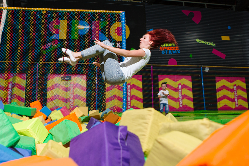 Игровая зона будет полностью реконструирована, сейчас там вовсю идёт отделка, поэтому доступ гостей временно ограничен. Ну, а территория батутов в полном распоряжении гостей. Занятия и просто весёлое прыганье идёт полным ходом.