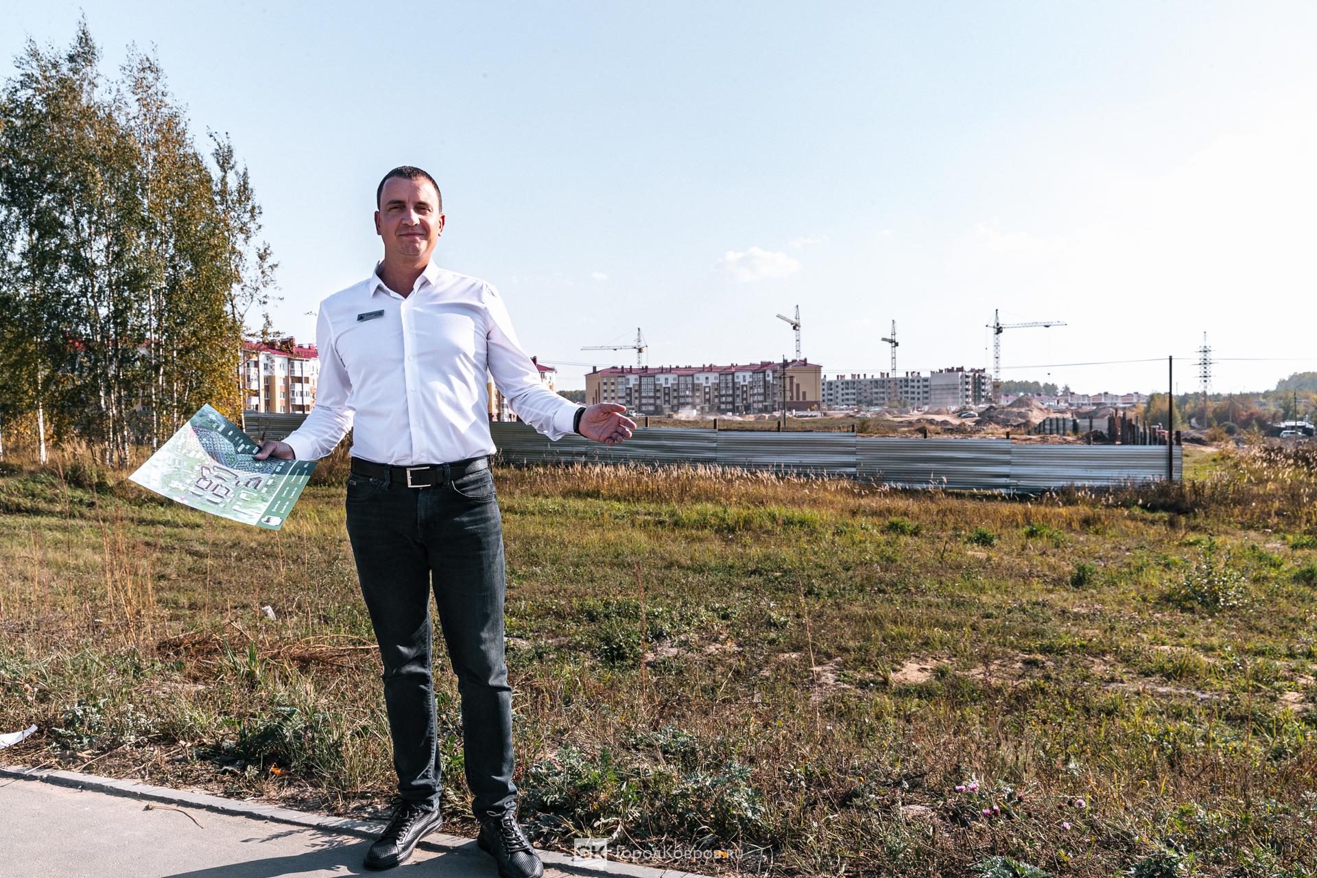 Мы погуляли по будущей строительной площадке, осмотрелись. Действительно, дом расположен очень выигрышно в плане подъездных путей. И он «очень в городе». Даже сейчас через забор просматривается не только Еловая, но и «Акварели», о которых вспоминали.