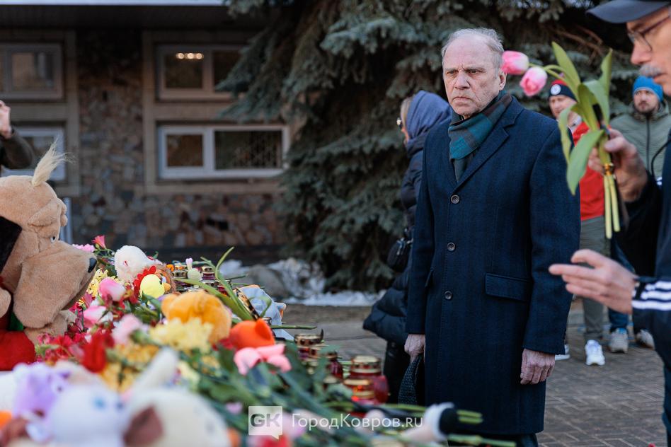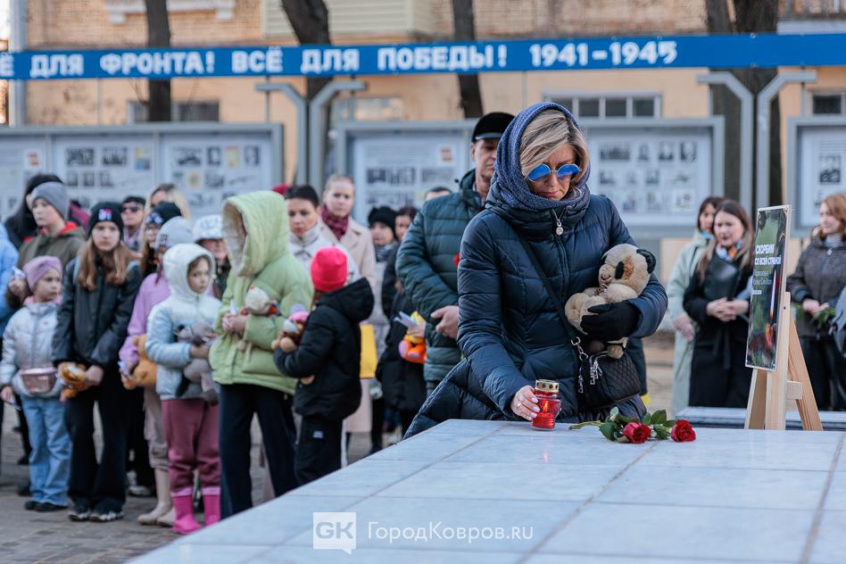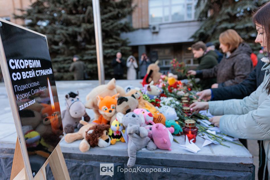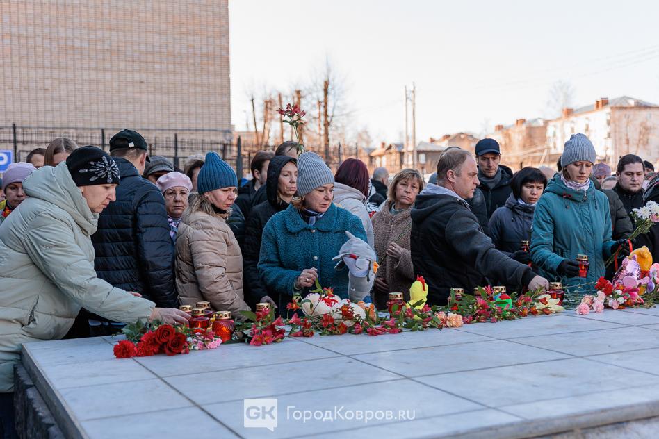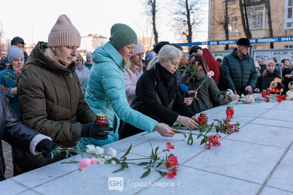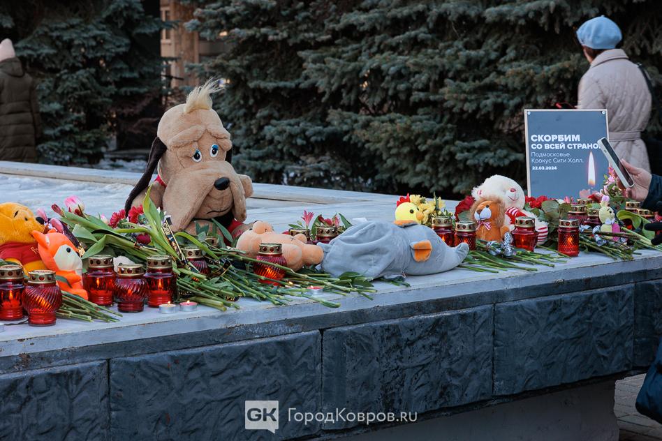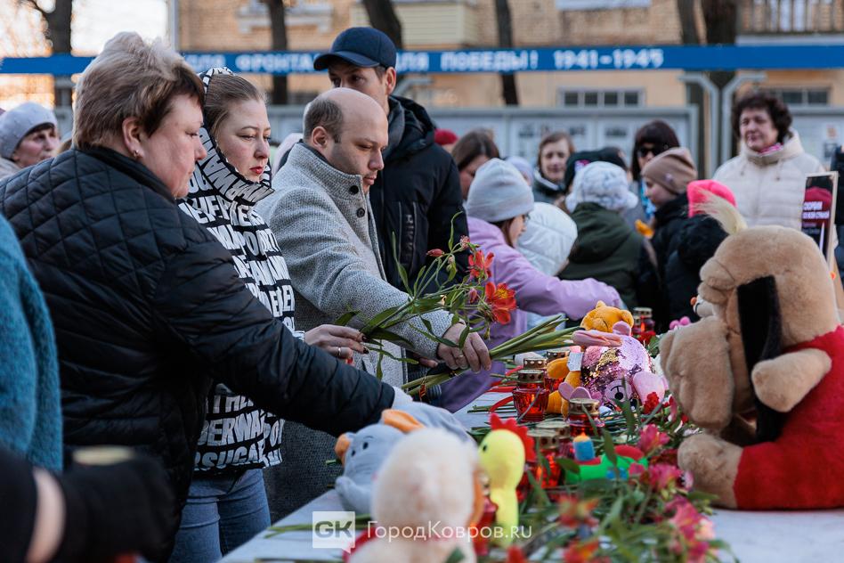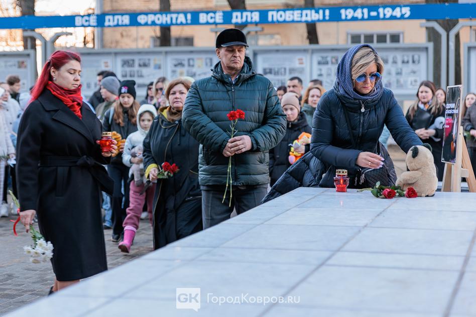 В Коврове сразу после трагических новостей из Красногорска стихиной площадкой для выражения соболезнований стала площадь Победы.