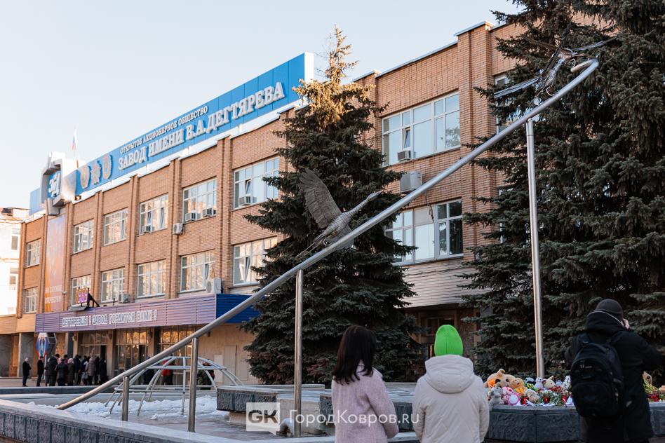 Сегодня напротив центральных проходных завода имени Дегтярева в Коврове прошла акция памяти и скорби по жертвам террористического акта в Крокус Сити Холле.