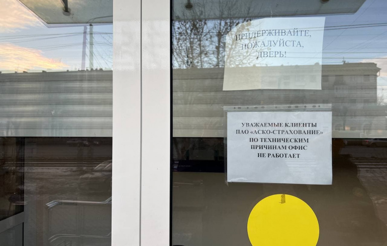В настоящий момент офисы страховой закрыты, на дверях висят вот такие объявления