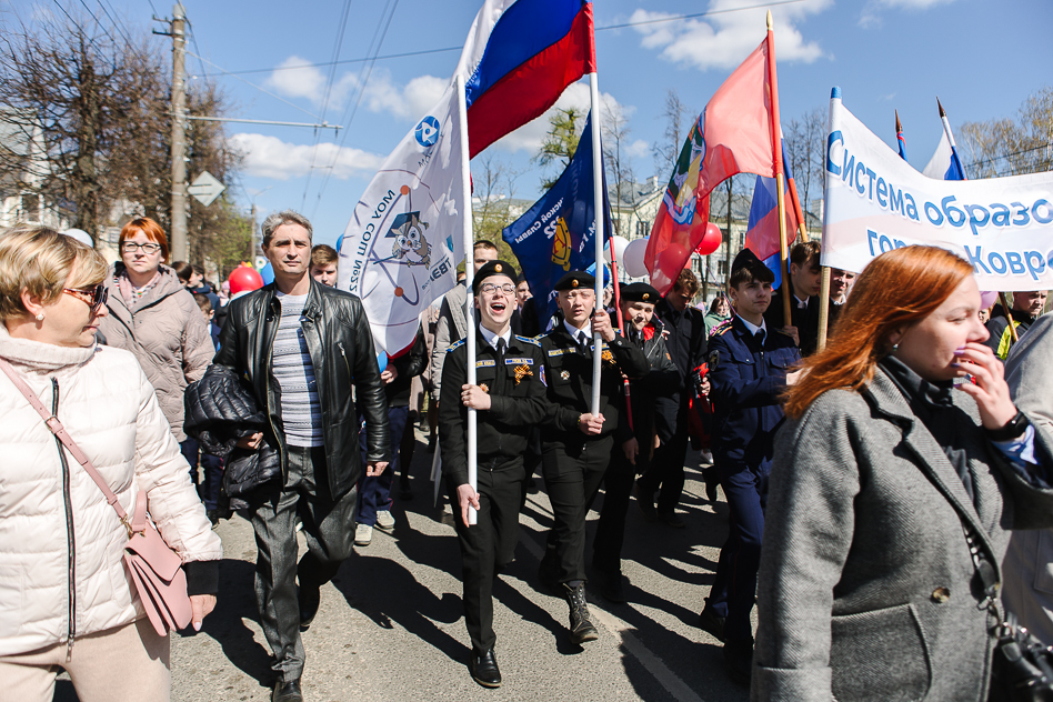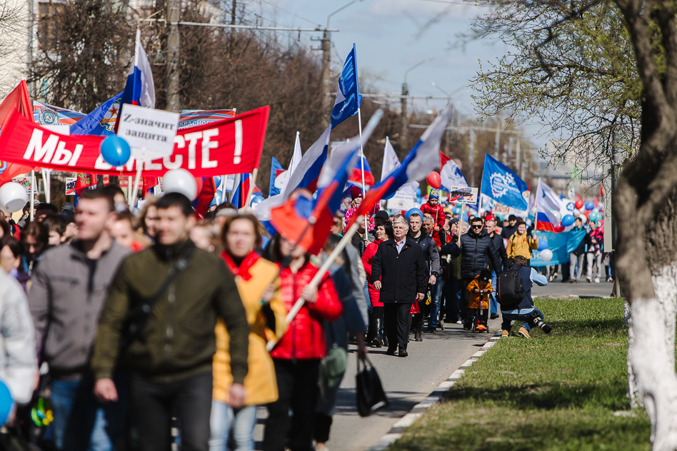 Открытой частью визита стало участие врио губернатора в шествии профсоюзных организаций. Александр Авдеев и глава города Елена Фомина возглавили колонну трудящихся, которая прошла от сквера оружейников до площади 200-летия Коврова.