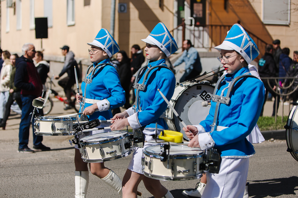 Однако колонна впечатляла. Строго, минималистично, но эффектно. Вначале маржоретки. Далее — начальство. Следом — остальные.