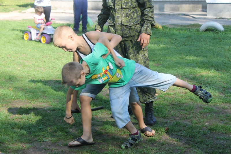 Мальчишкам и девчонкам демонстрация приемов очень понравилась. Ребята и вожатые лагеря пробовали лично поучаствовать в тест-тренингах, так же сотрудниками были продемонстрированы техника подтягивания на перекладине, применение спец. средств самозащиты, многие ребята могли на себе примерить спец. средства.