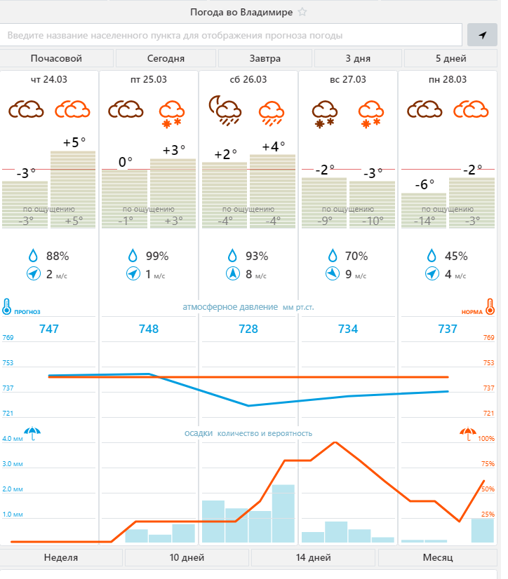 Но что на самом деле сообщает метеоцентр? Заходим в раздел «Погода во Владимирской области»: