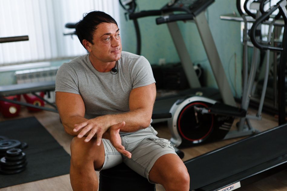Спортзал, в котором пространство организовано «под себя». Во время разговора было заметно, что Дмитрию комфортно. Спортзал – это его стихия.