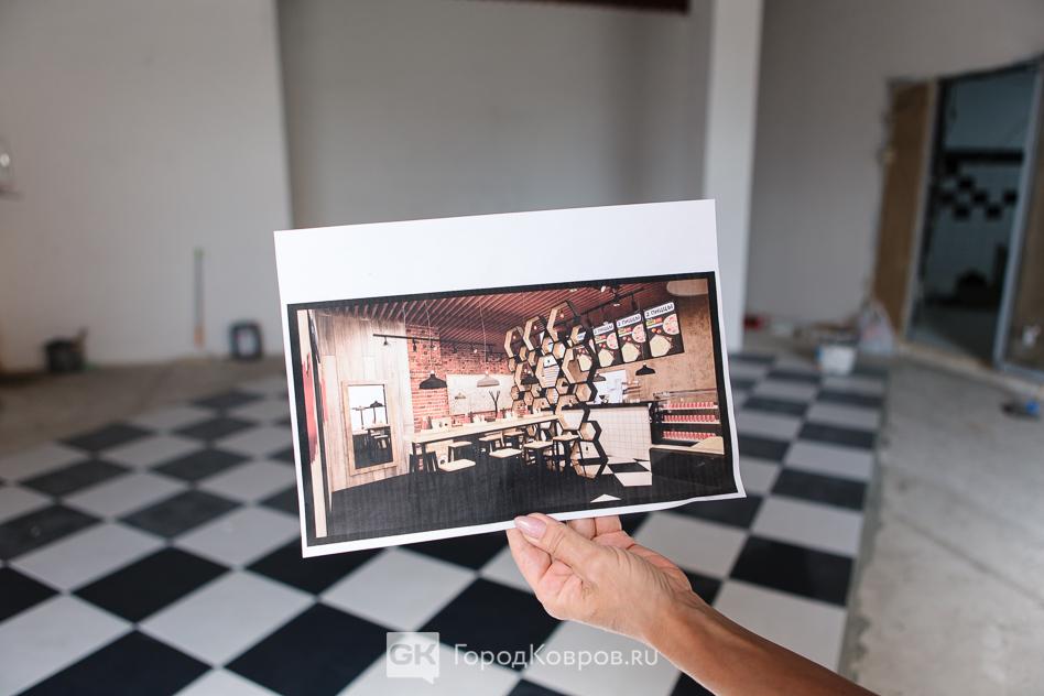 Мы побывали в будущем кафе в июле. Примечательно, что работа шла полным ходом. На момент нашего появления стены будущего кафе были первозданно-белыми.