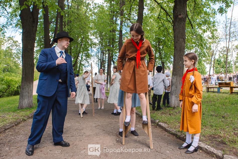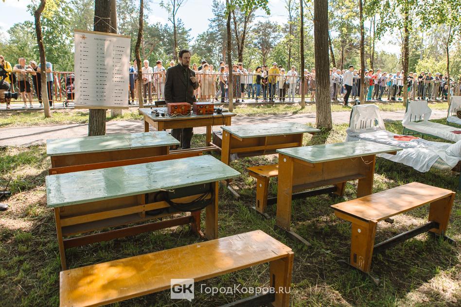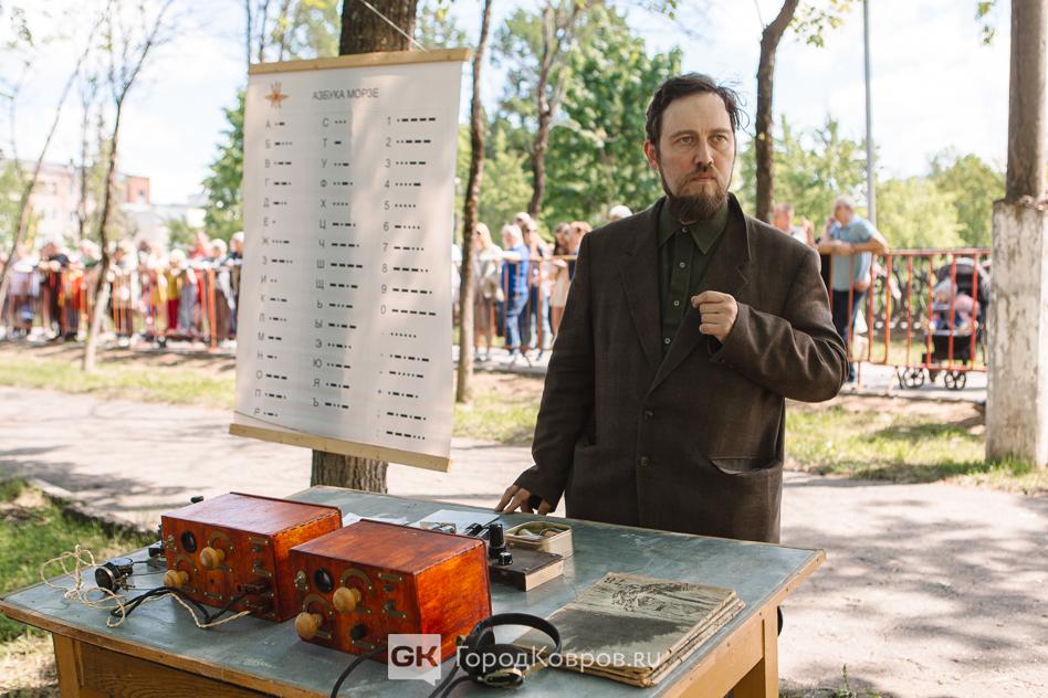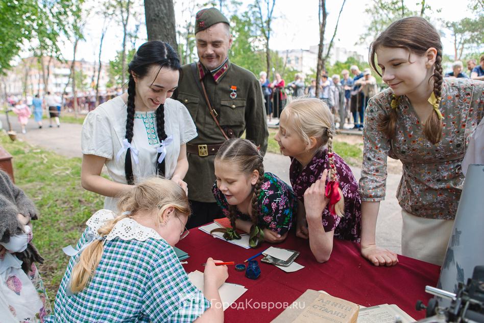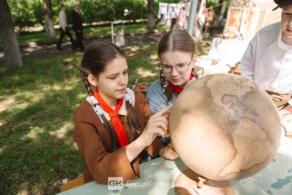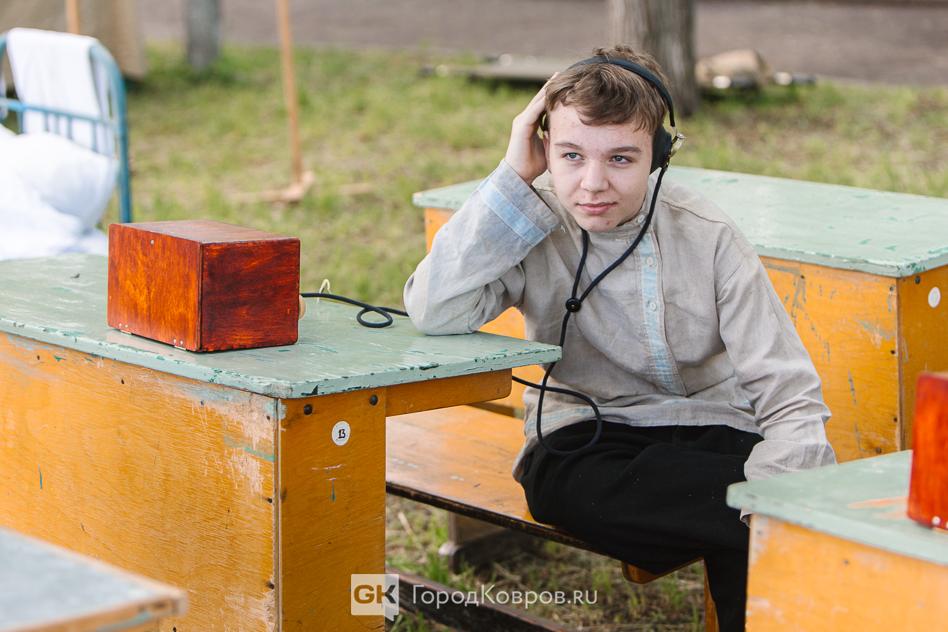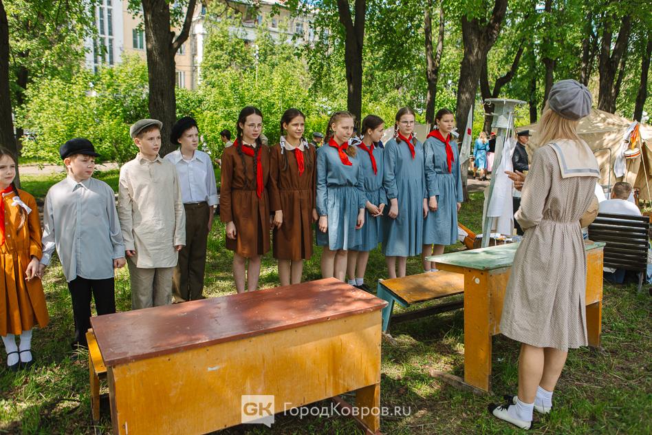 …Локациями стали воспроизведение работы тира, радиокружка и школьный урок периода 40-х годов. В качестве пионеров советской эпохи выступали ковровские школьницы. Девочки, кстати, именно реконструкции узнали в деталях, что такое школьная форма, пионерский галстук, и как его правильно завязывать.