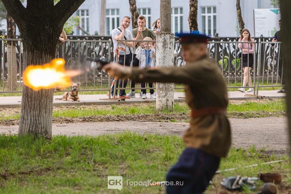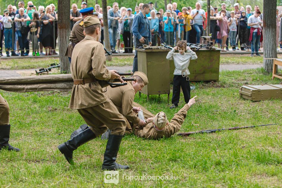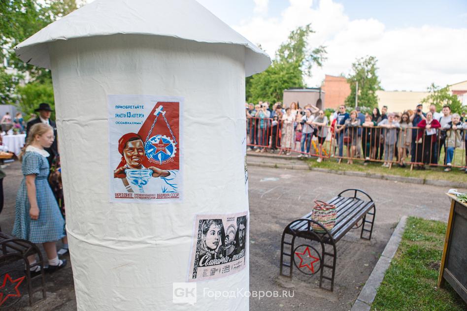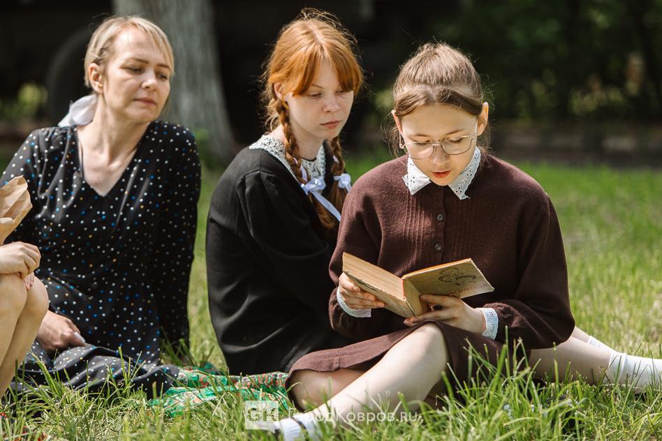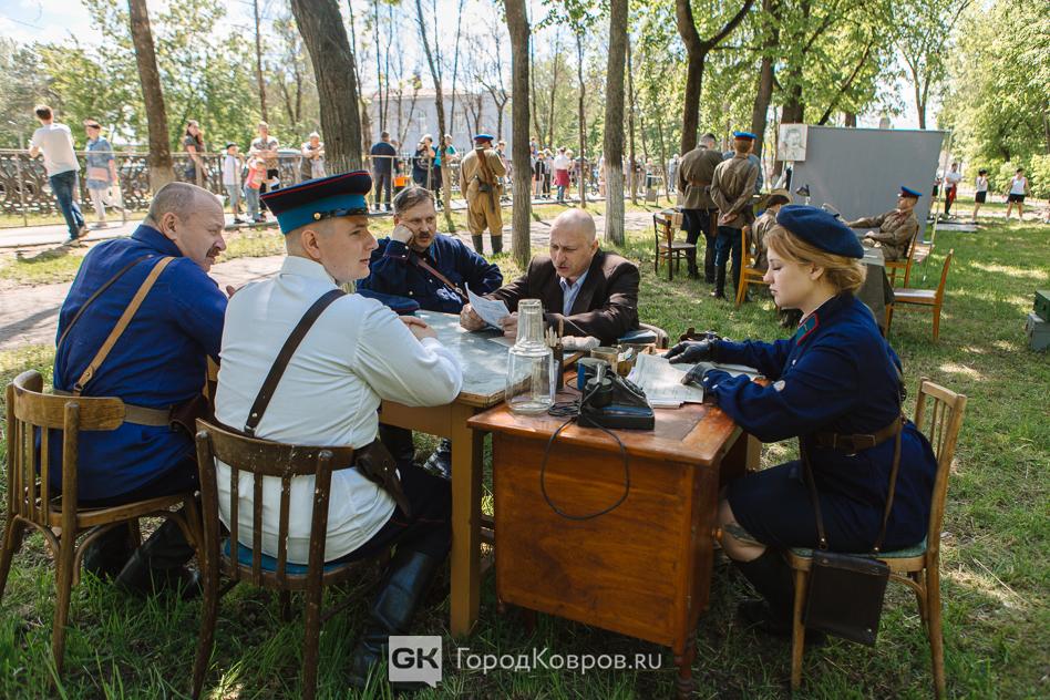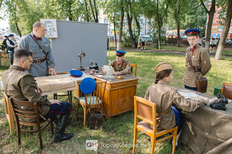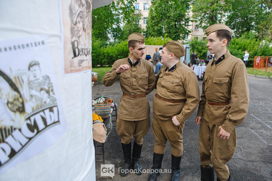 …Локациями стали воспроизведение работы тира, радиокружка и школьный урок периода 40-х годов. В качестве пионеров советской эпохи выступали ковровские школьницы. Девочки, кстати, именно реконструкции узнали в деталях, что такое школьная форма, пионерский галстук, и как его правильно завязывать.