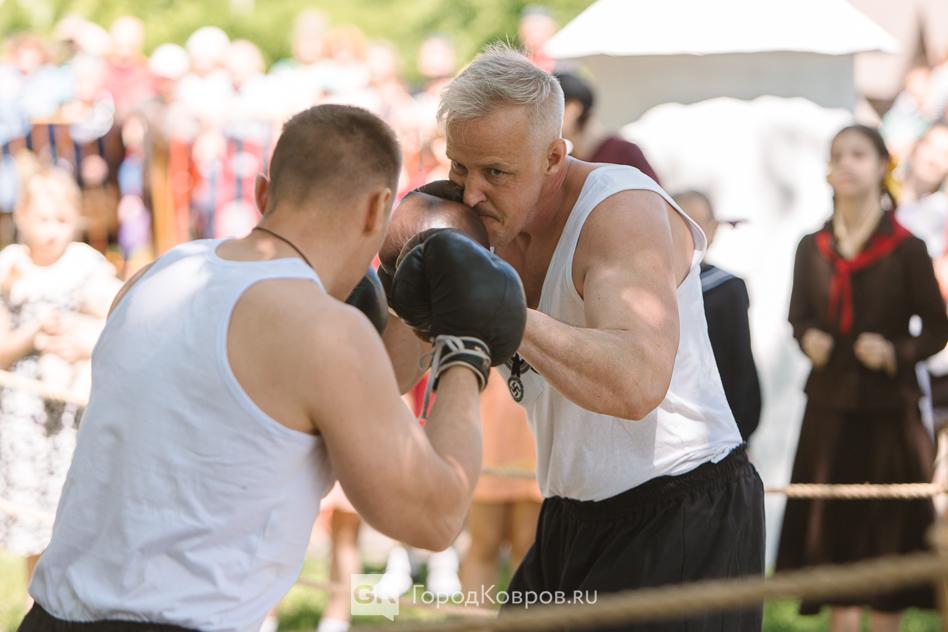 …Спортивная жизнь города – это несколько локаций на фестивале. Одна из них – боксёрский ринг. Поединок боксёров вполне натуральный – не только форма спортсменов, но и хуки слева и справа…