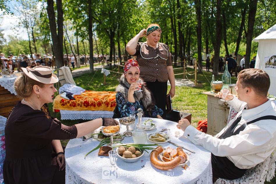 …Иная обстановка в другой квартире. Условное название – «воровская малина». Интерьер составили антикварные вещи и мебель. На эту локацию реконструкторов привлекало ещё и то, что по легенде фестиваля обитатели квартиры обедают. И еда была самая настоящая. Осталось неясным, настоящим ли являлся алкоголь, который под закуски употребляли участники…