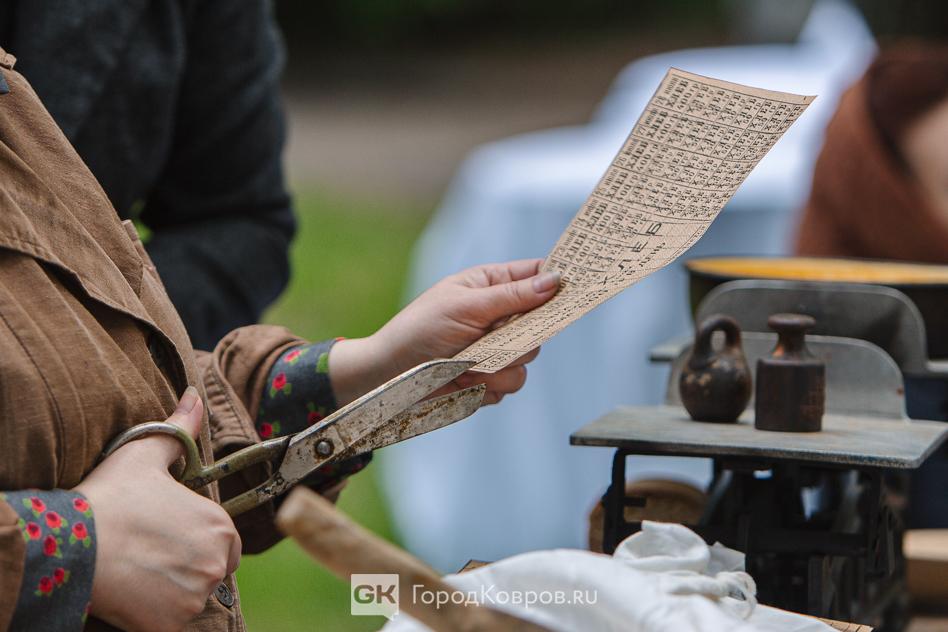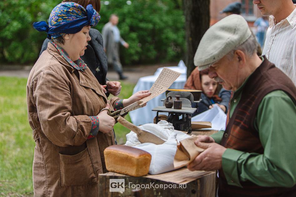 …Бытовыми сценами военной жизни Коврова стали очереди в магазин с продовольственными карточками, образцы которых реконструторы также поднимали в архивах.