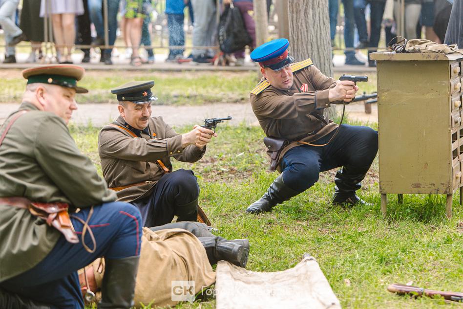 …Военная техника, часть которой производилась в военный период на заводе имени Киркижа (ныне – ЗиД), заявила о себе выстрелами. Реконструкторы продемонстрировали работу зенитно-пулемётной точки. Выстрелы были холостыми, но звук их зрителей впечатлил.