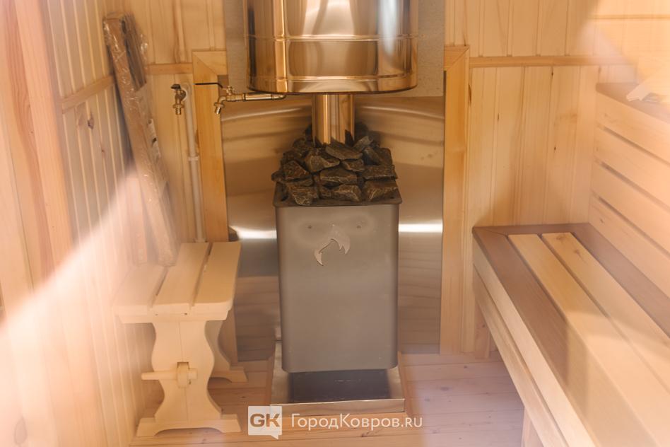 В наших банях мы устанавливаем, проверенную временем, печь-камин «Флагман» от производителя «Берёзка». Советуем монтировать её с выносом топки наружу. В комплекте с печкой смонтирован бак для нагрева воды на 50 л. Наши бани подходят для круглогодичного использования, стены утеплены минватой, а пол — пенополистеролом. Чтобы протопить баню до нужной температуры понадобится не более часа.
