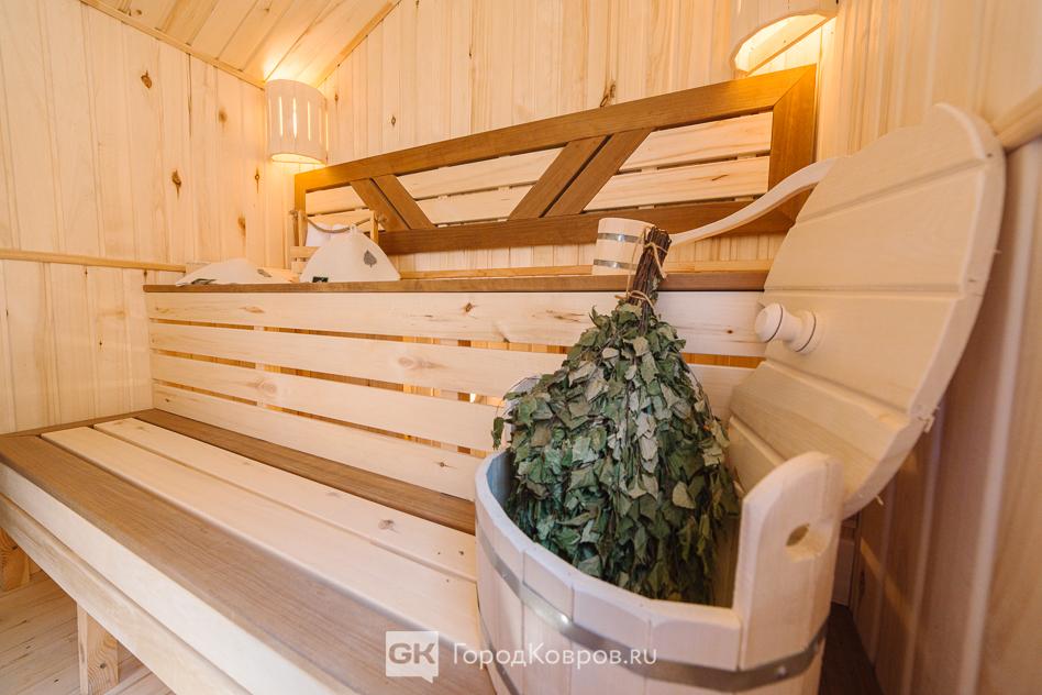 Нашему клиенту после монтажа уже делать ничего не нужно. В бане есть всё необходимое. Установлены двухуровневый полог и подспинник из термо-осины, установлена мебель в зоне отдыха, полки и вешалки для полотенец. С баней идёт комплект принадлежностей для комфортного парения: камни для печи, ушат с ковшом, дизайнерский дровник с дровами, банная станция с термометром и гигрометром, веник. Одним словом, заходите париться.