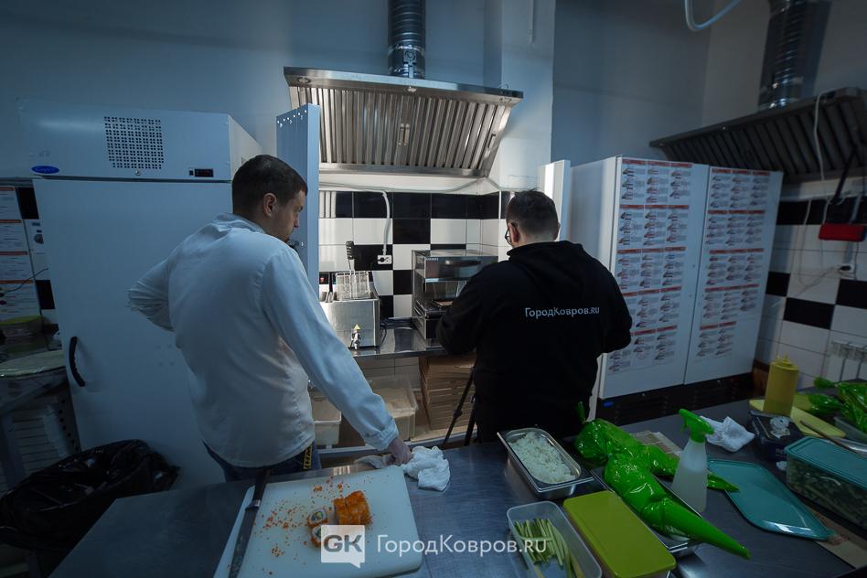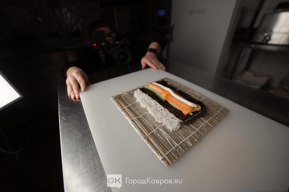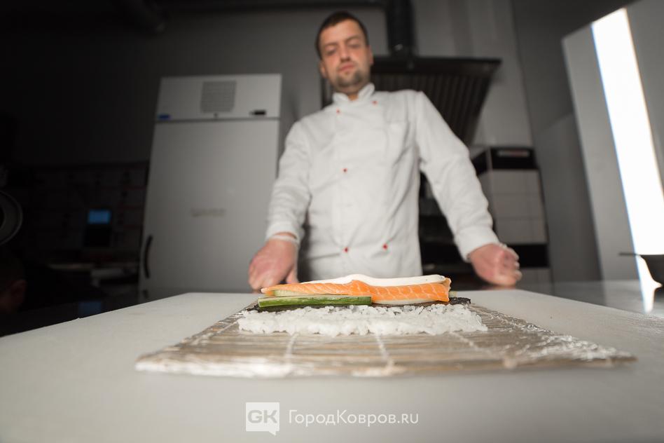 Теперь, собственно, о роллах. Специально для нас (точнее, для съёмок видео) роллы приготовил владелец FARFOR в Коврове Илья Маркелов. Он не только предприниматель, но и шеф-повар.