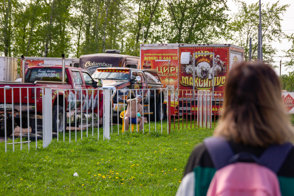 В момент нашей встречи он был занят… покраской заборчика, ограждающего комплекс шапито. Внутрь Павел нас не пустил, но немного пообщались. С его слов, часть участников труппы (люди) смогли уехать, сейчас на удалёнке ожидают завершения «вирусной войны», чтобы вернуться в Ковров и всё-таки провести гастроль. Самые стойкие держат оборону тут, заботятся о зверушках.