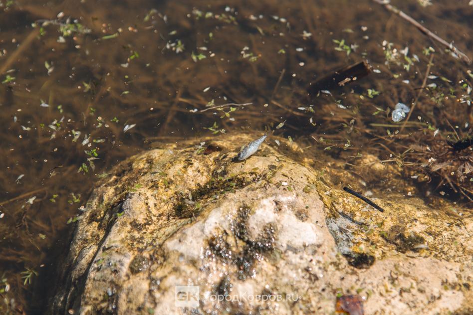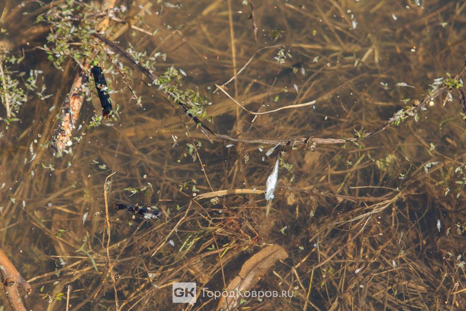Весь берег в трупах. На Кукушкином пруду замор рыбы. Весь берег в мертвых карпах и не только. Чайки и утки, которые недавно прилетели, эту рыбу не едят.