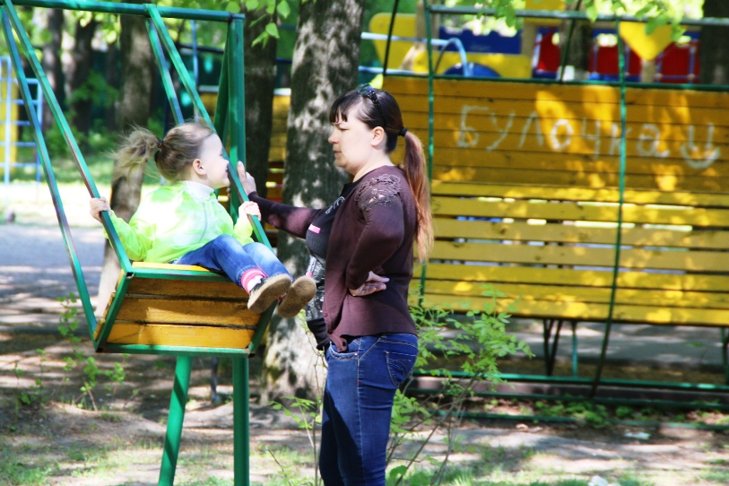 Вообще, мамы/папы/бабушки с детьми и составляют основной контингент парка Малеева-Кангина. Некоторые даже приезжают из других районов, как, например, Анна Ильина с дочкой Валерией.