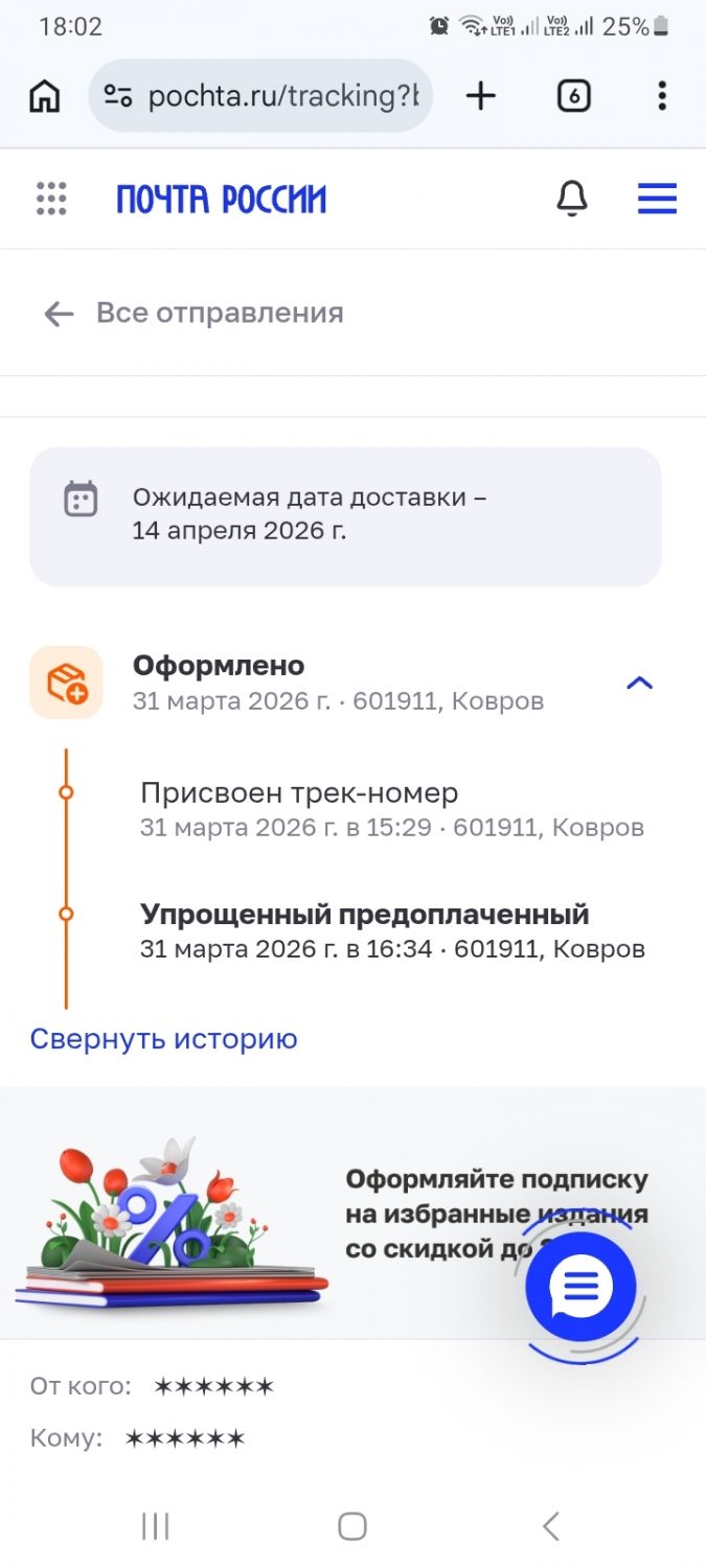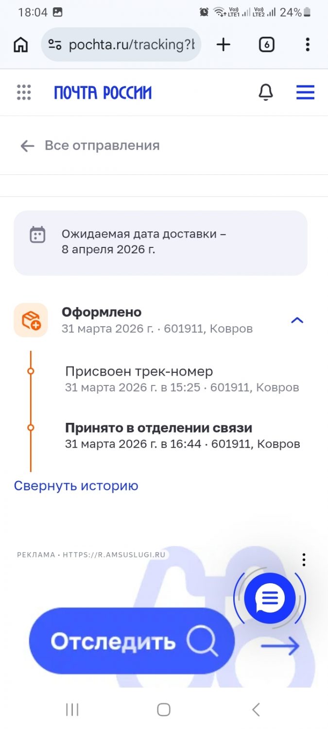 По информации от читателей, на центральном сортировочном узле Коврова могли смениться сотрудники, из-за чего отправления перестали покидать отделения. В мобильном приложении статус посылок уже неделю не меняется.
