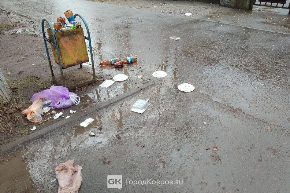 Даже там, где разрушить нечего, юные ковровчане умудряются насвинячить. Вот так выглядит урна около 14-й школы в выходные. Видимо, неподалёку устроили «пикник». Добавили и жители какого-то близлежащего дома, скорее всего, вполне взрослые — выкинули в урну домашний мусор. И то ли промахнулись, то ли нарочно оставили поодаль.