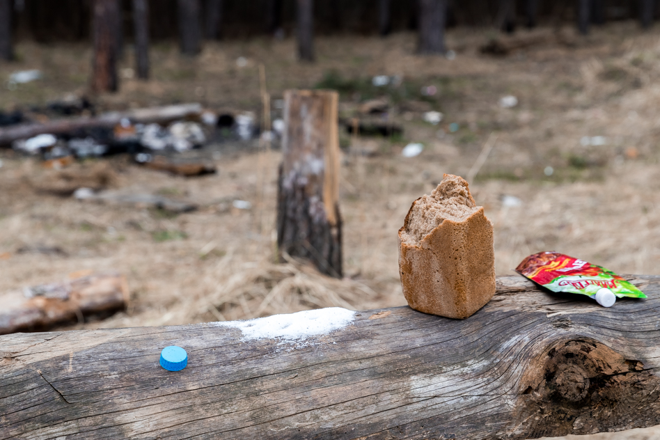 Как и в прошлом году, нас встречают кучки мусора: бутылки, пакеты, окурки и прочие отходы, оставшиеся от посетивших лесной массив отдыхающих.