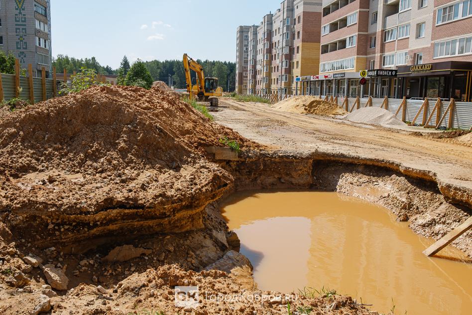 Так, на момент нашего приезда на улицы М. Устинова субподрядчик «откопал» большой водовод, который снабжает водой всю Центральную городскую больницу – ту, которая «медсанчасть». Это социально-значимый стратегический объект. Оставить на длительное время (пока идёт демонтаж и переустановка трубы) больницу без воды – практически невозможная вещь. Третью неделю представители мэрии, больницы и подрядчика ищут выход. Андрей Маров заверил, что техническое решение в итоге будет найдено. Но пока из-за «неудобной» трубы в работе простой.