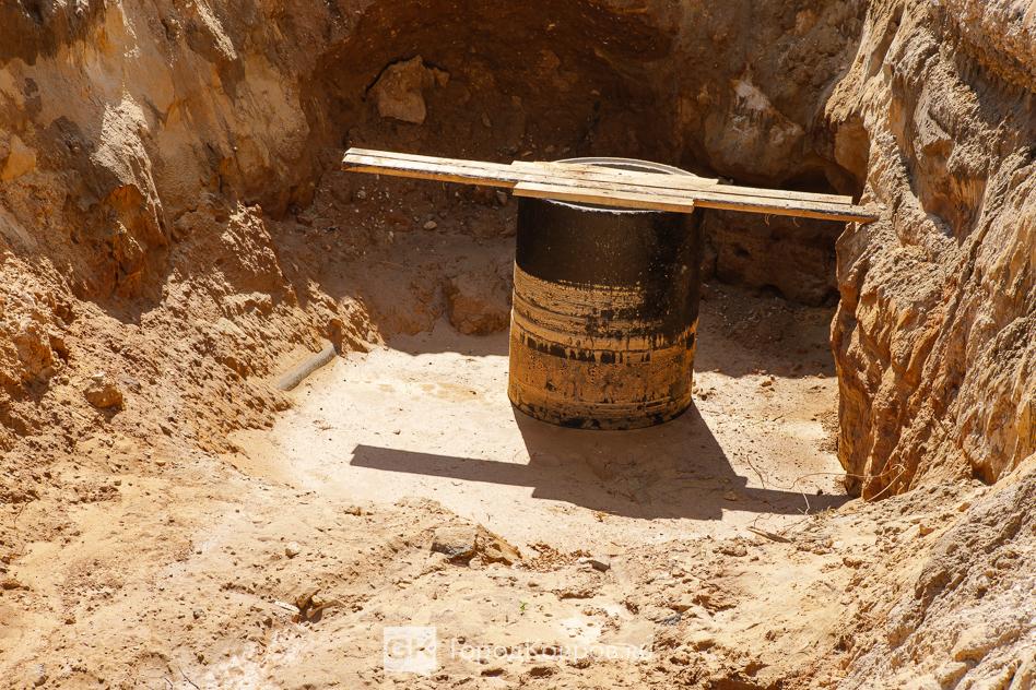 Колодцы ливнёвки пока установлены только частично. Полностью готовы только участки, где мы не встретили непредвиденных коммуникаций. Это буквально пара небольших участков. Исключения из общего правила…