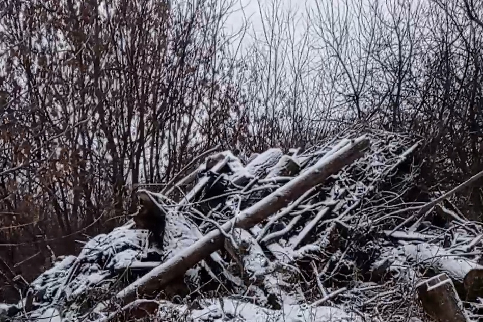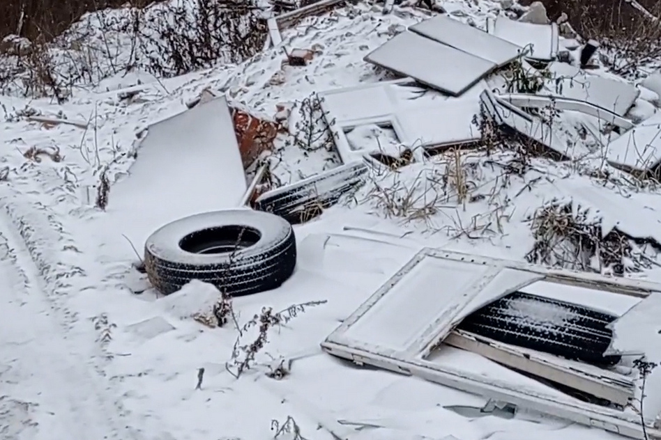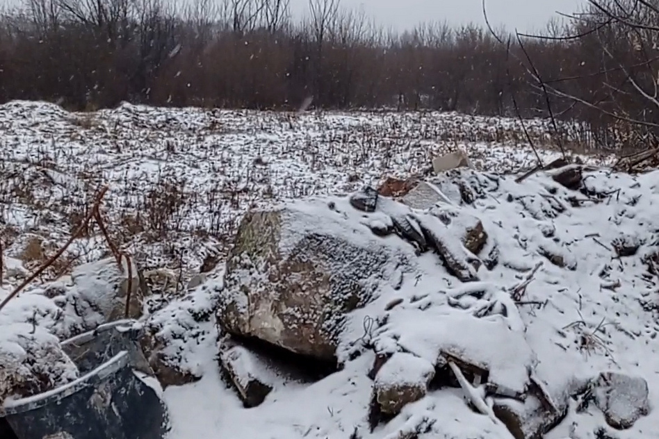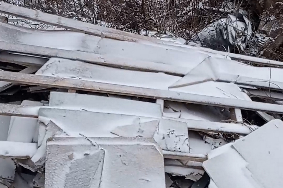 Мы видим здесь в основном строительный мусор. Однако нам не смогли дать конкретный ответ, кто владелец данного участка и почему он допустил здесь организацию несанкционированной свалки. Сейчас мы не можем установить конкретного объема и площади свалки, так как часть отходов оказалась под снегом.