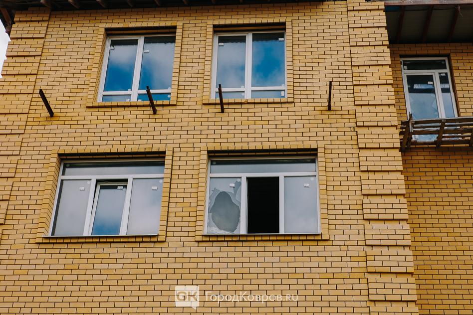 Окно повреждено явно изнутри. И обратите внимание: человек, который окажется внутри и захочет открыть балконное окно, может не учесть, что балкона пока не сделали.
