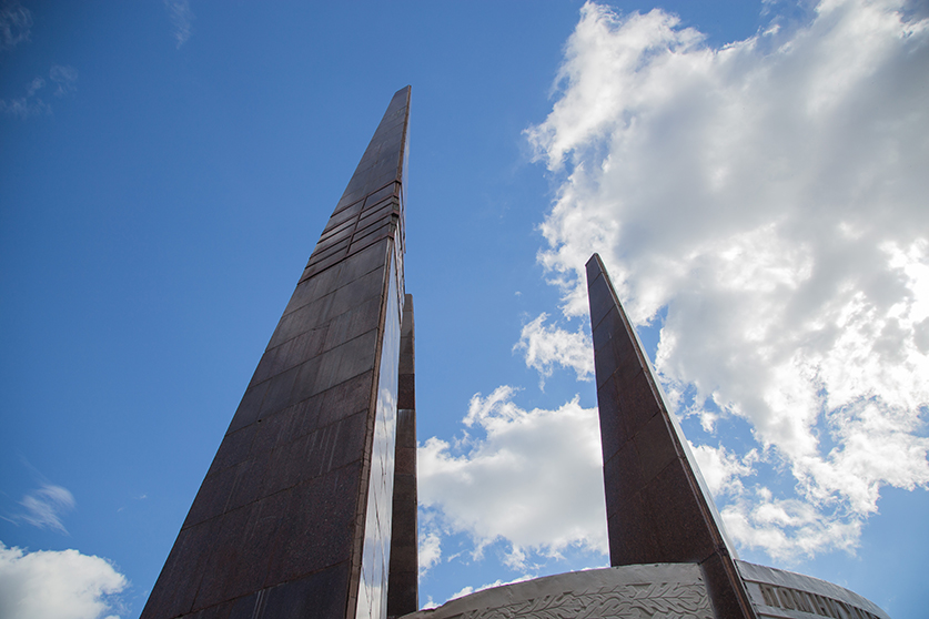 Вот есть в нашем городе памятник ковровчанам, погибшим в годы войны. Открыли его еще в 1968 году. Очень символичный монумент: три стелы как образ вечного огня, вечной памяти по тем, кто ценой своей жизни подарил нам мир без фашистов. К этому памятнику всегда приходят ветераны и жители города 9 мая. Сюда, приезжают и в день свадьбы молодожены. Это центральная площадь нашего города.