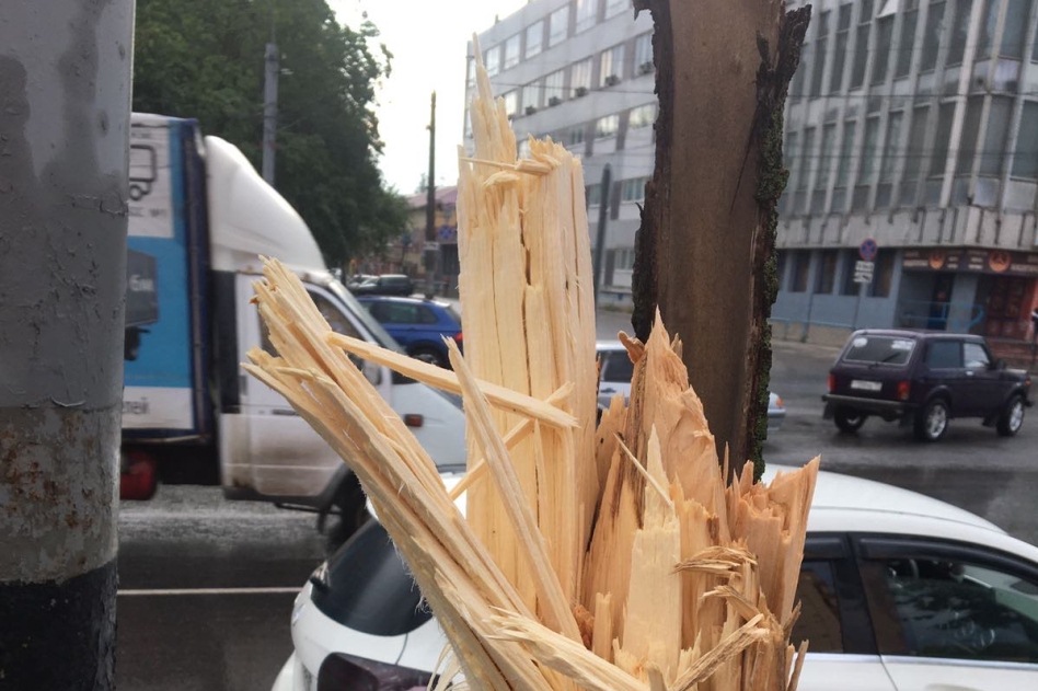 По предварительным итогам получается, что самой крупной неприятностью стало именно падение дерева на внедорожник на проспекте Ленина. На видео работа сотрудников МУ «ГО и ЧС» по распиловке рухнувшего дерева.