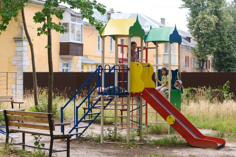 Мы ещё некоторое время повозмущались с Кириллом. Он припомнил, что раньше тут вообще был полный кошмар. Но года три назад по инициативе ЗиДа (так говорят на районе) поставили те самые малые формы, на которых играли Варя и Катя. Кирилл вспоминал: