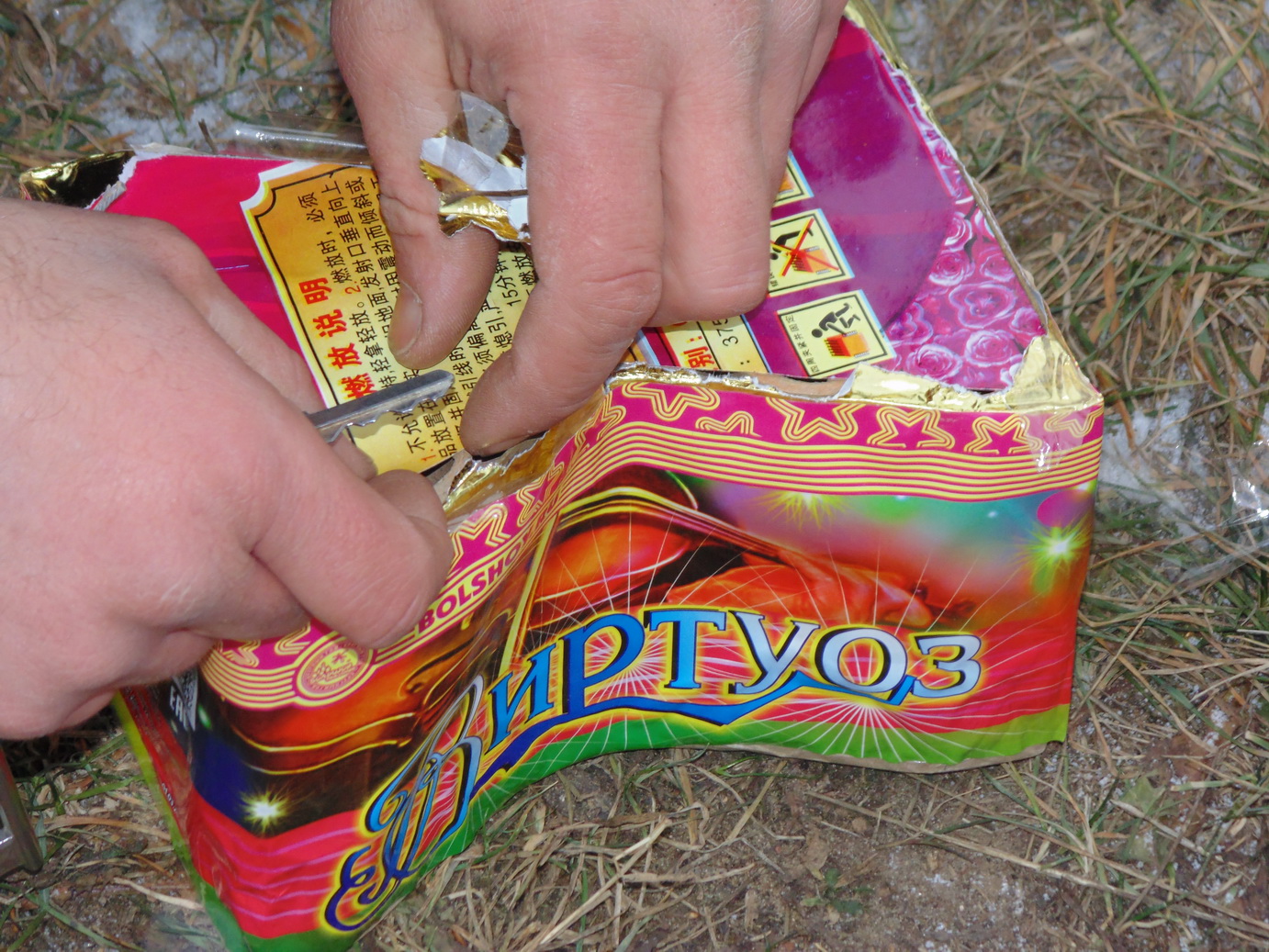 Соблюдая все меры предосторожности, спасатели приступили к учебным запускам пиротехники. Салют под названием «Виртуоз», как самый красивый и эффектный, решили запускать первым. Согласно инструкции, салют установили на открытой территории, где в радиусе 50 метров нет ни домов, ни деревьев, ни проводов. При поджиге изделие нельзя держать в руках и наклоняться над ним.