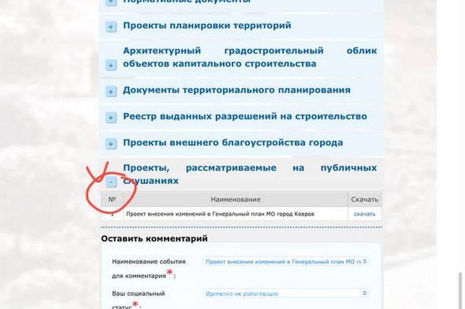 Шаг 2. Заходите в раздел «Проекты , рассматриваемые на публичных слушаниях