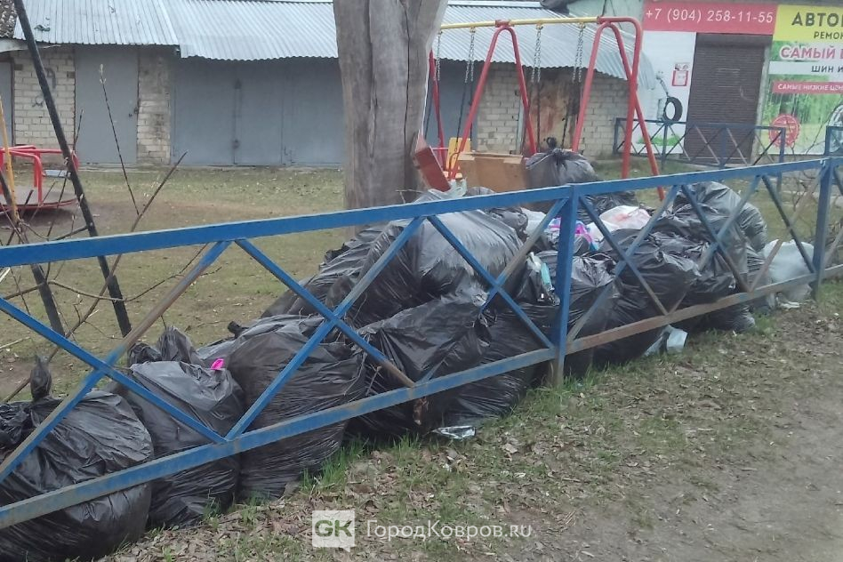 По соседству на детской площадке с неделю стоят чёрные мешки, в которые жители дома 48 на проспекте Ленина старательно собрали весь мусор. Однако управляющая компания их так и не вывезла. Кучу пополняют прохожие, бросая мусор сверху, пакеты рвут птицы. Скоро, видимо, весь мусор вновь окажется на площадке.