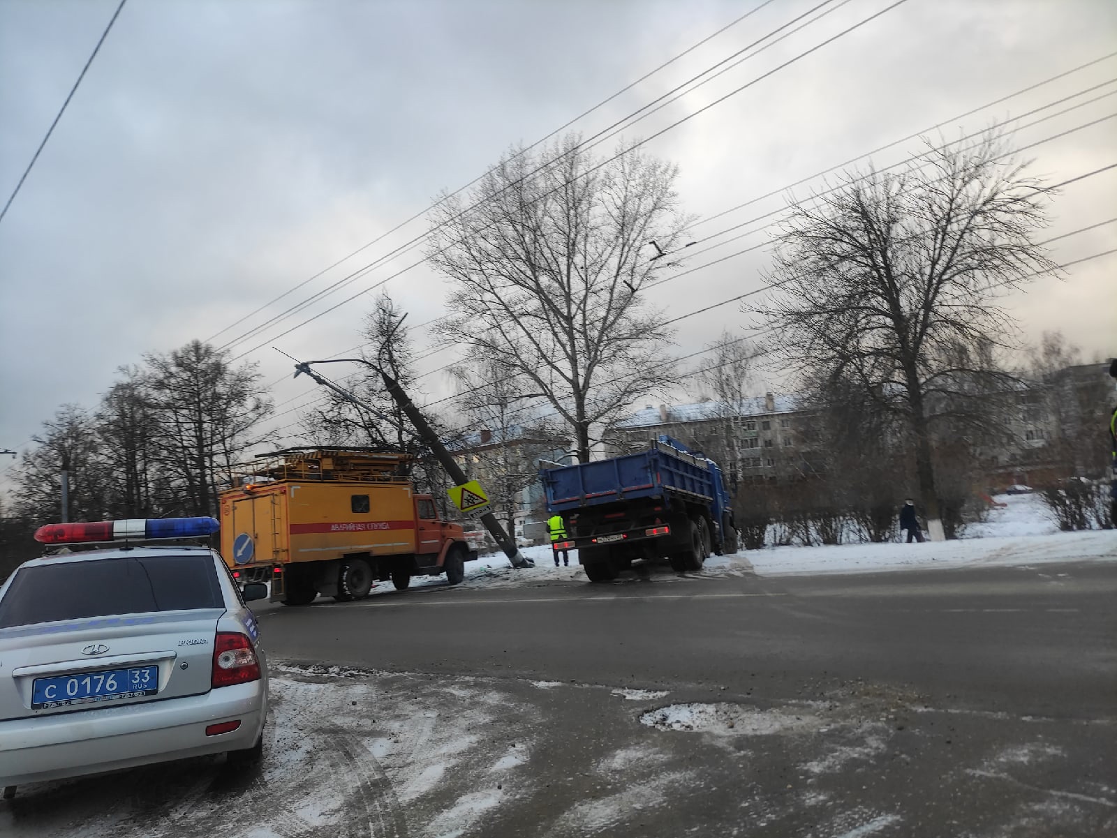 Тревогу забили в одном из пабликов ВК, предположив, что из-за того, что автомобиль врезался и снёс опорный столб, троллейбусы могут встать.