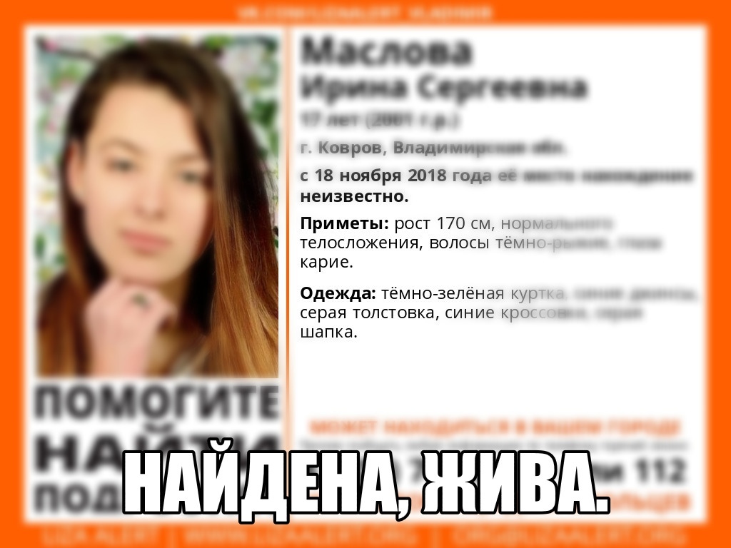 Напомним, 17-летняя ковровчанка пропала ещё 18 ноября 2018 года.