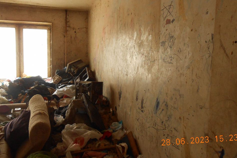 В итоге было принято решение о назначении исполнительных действий. При визите к должнику судебные приставы обнаружили полностью захламлённую квартиру, передвижение внутри которой было затруднено. Помещение туалета в жилище не функционировало, ванна была забита ветошью и мусором. Среди хлама были организованы спальные места, на одном из диванов размещалась электрическая плитка, на которой, вероятно, наниматели готовили себе еду.