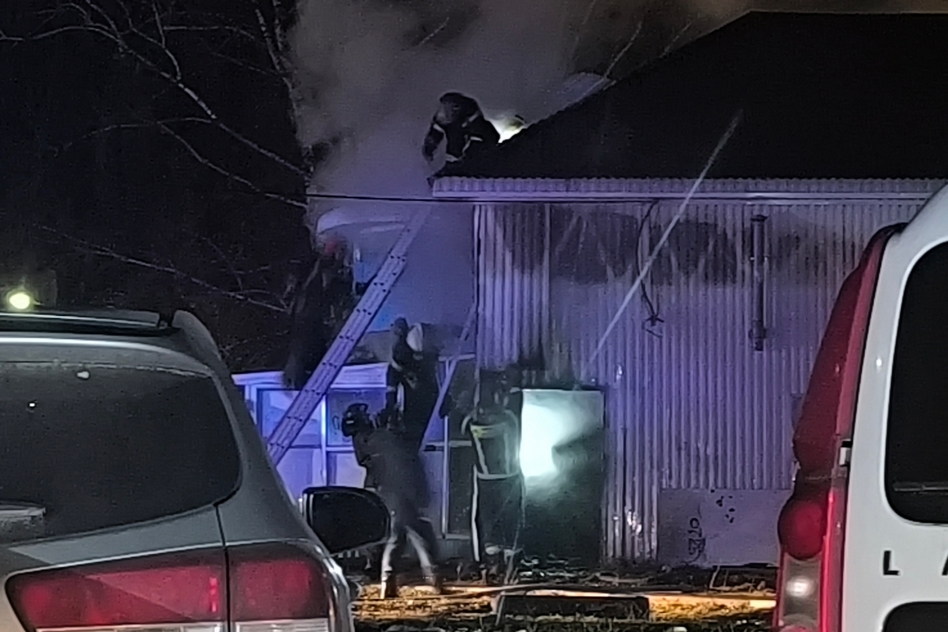 - «По прибытию к месту вызова наблюдался огонь в подсобном помещении. Строение из сэндвич-панелей, пришлось вскрывать металлические стены, чтобы тушить утеплитель между листами железа», — рассказала Никитина.