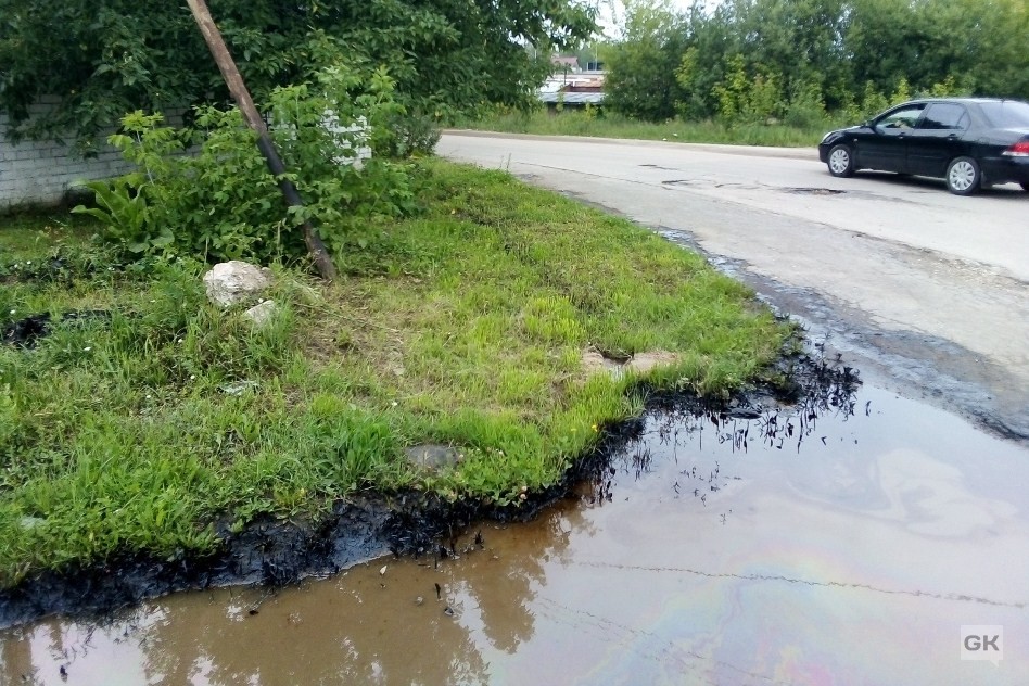 Думается, что лужа — это просто лужа. Нефтяная плёнка вполне могла стать результатом того, что на этом месте была припаркована фура. И это, конечно, не здорово.